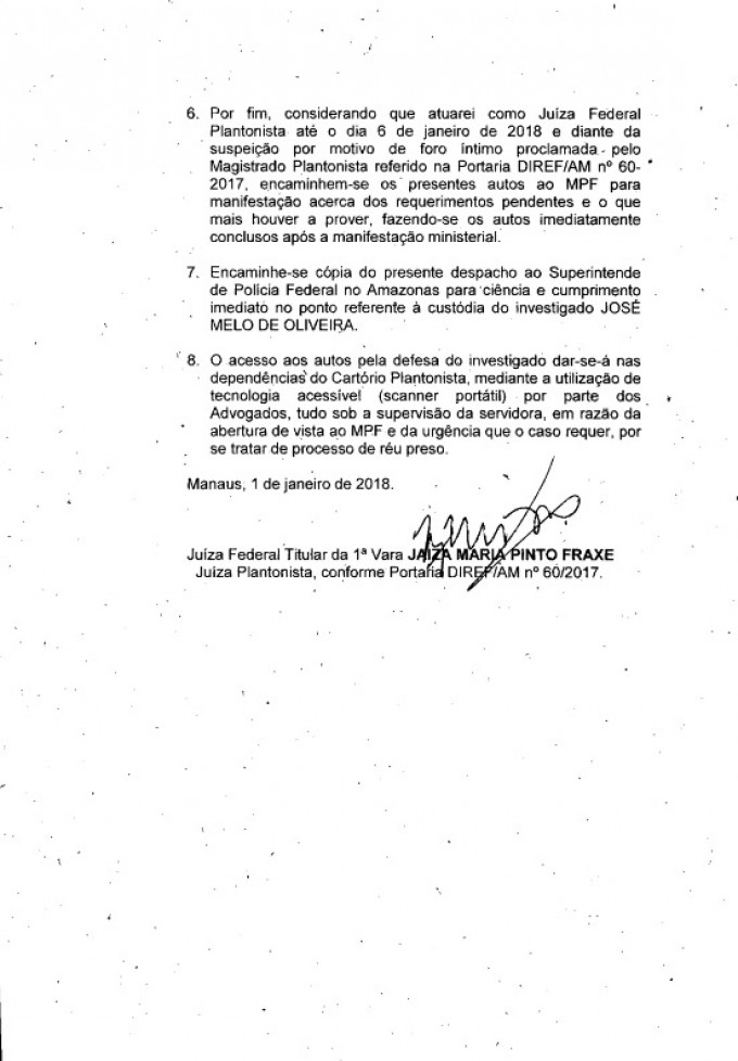 Melo e os ex-secretários estão detidos desde o último domingo(31) na sede da PF e seriam transferidos para o presídio nesta terça-feira(2). Com a decisão, da juíza plantonista Jaíza Fraxe, apenas os ex-gestores serão levados.