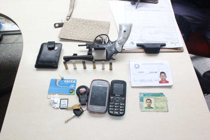 Entre os objetos roubados e de posse dos assaltantes estavam celulares, bolsas, carteiras e uma arma calibre 38 com seis balas, duas deflagradas.