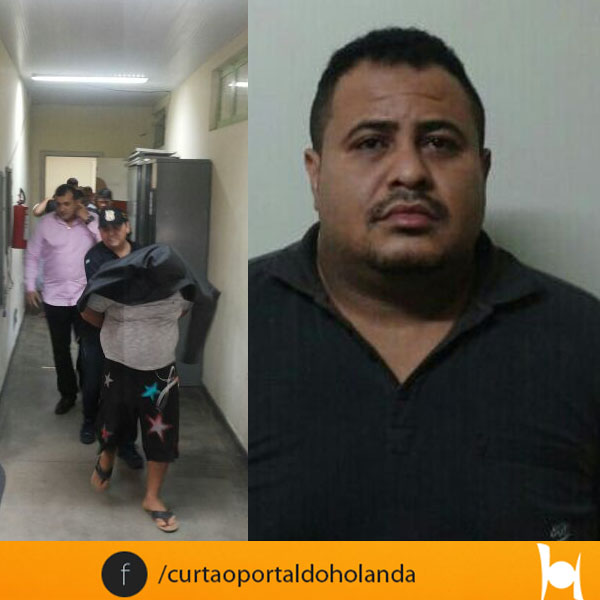 (Para preservar a imagem de "Arapapá", líder da quadrilha, advogado põe terno sobre o cliente. Imagens: Wallace Brayan/Portal do Holanda)