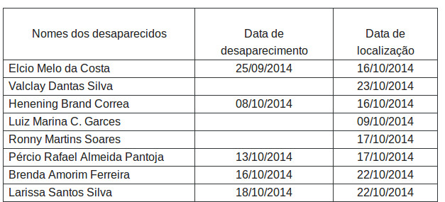 A Polícia Civil do Amazonas divulga nomes e imagem de pessoas registradas por familiares como desaparecidas, as quais já foram localizadas durante o mês de outubro.