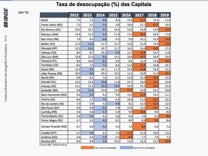 Manaus/A - O maior número de pessoas desocupados estão em Manaus, entre todas as capitais brasileiras, segundo levantamento realizado pela Pesquisa Nacional por Amostragem de Domicílios Contínua (Pnad), divulgada pelo Instituto Brasileiro de Geografia Estatística. O resultado foi publicado na última sexta-feira (14), referente ao último trimestre de 2019.