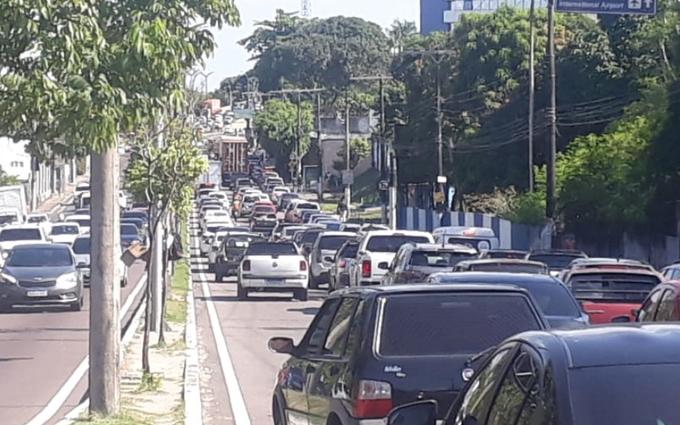 Manaus/AM - Uma manifestação dos servidores públicos na frente da Assembleia Legislativa do Estado (Aleam), está causando muito dor de cabeça para quem precisa trafegar pela avenida Mário Ipiranga, no bairro Parque 10, Zona Sul, e vias adjacentes.