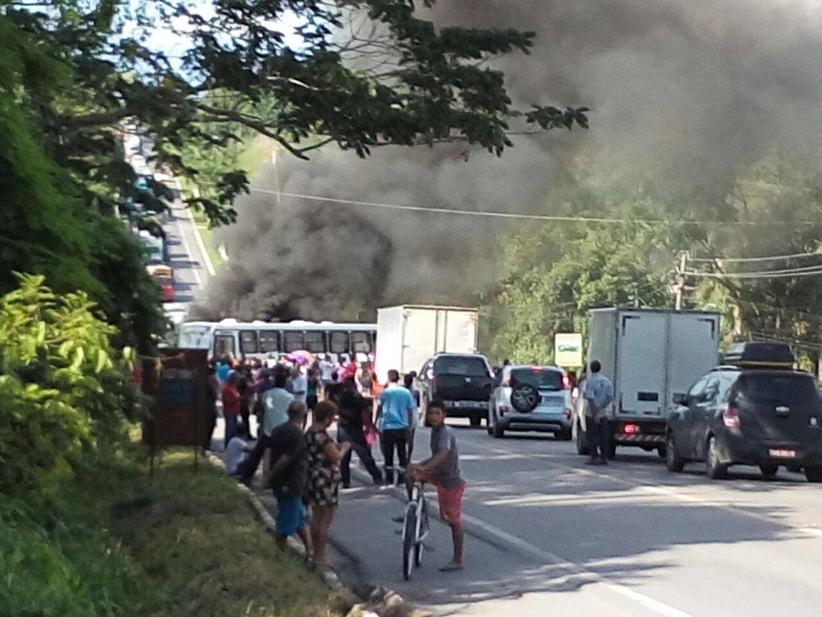No local, pneus e pedaços de madeira foram incendiados, obstruindo totalmente a passagem na estrada e prejudicando o trânsito.