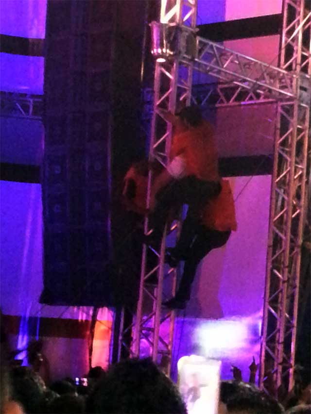 Uma mulher não identificada chamou a atenção ao trepar em uma das torres e ser retirada com violência pelos seguranças. Depois de ter bebido demais ela teria dito às amigas que queria ver o cantor Gusttavo Lima de perto. No entanto seu plano foi frustrado.
