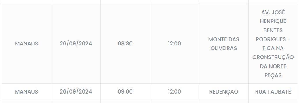 Manaus/AM - Ruas e avenidas de cinco bairros de diferentes zonas de Manaus vão ficar sem energia nesta quinta-feira (26), devido ao serviço de manutenção programada da concessionária responsável.