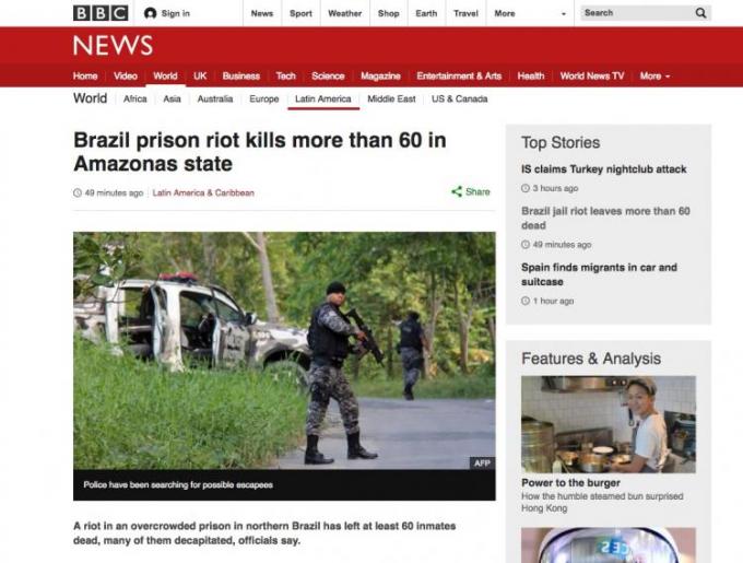 Já a BBC News escreveu: “Manifestação de prisão no Brasil mata mais de 60 pessoas no Estado do Amazonas”.