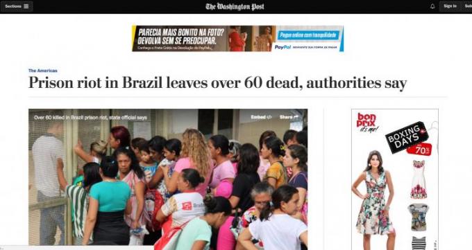 O americano The Washington Post destacou: “Rebelião na prisão no Brasil deixa mais de 60 mortos, dizem autoridades”.