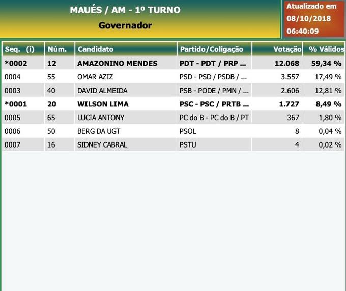 Início Amazonas Maués: Governador - candidatos mais votados