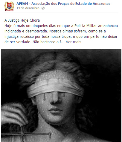 Hoje choramos por aqueles que deveriam presar pela justiça, pela ética e pela lei, mas que decidiram sair em defesa do infrator. Preferiram se submeter ao status do criminoso, ao seu poder aquisitivo e ao seu diploma acadêmico, como se ser graduado a colocasse acima da lei. Deixamos aqui nosso parabéns a esta guarnição que cumpriu com seu dever constitucional. Saibam que nós, assim como todos os Praças da PMAM estamos do lado de vocês. Médicos, Engenheiros, Juízes, Oficiais, não importa, a lei é igual para todos.