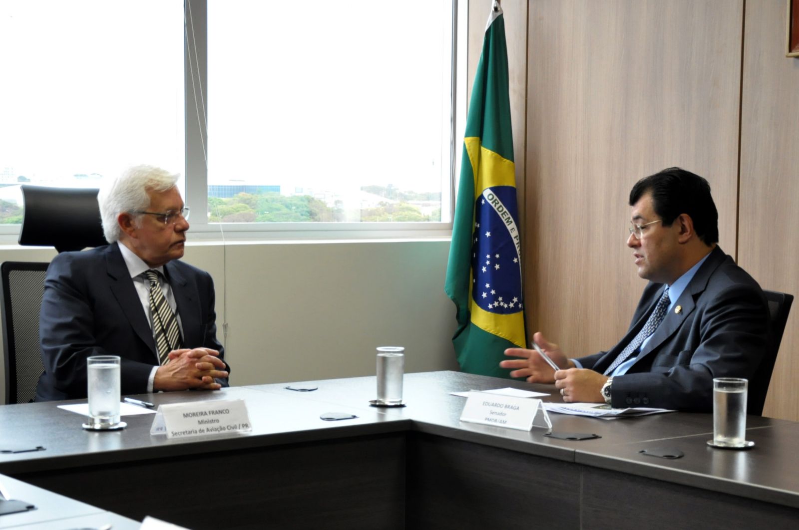 O senador Eduardo Braga explicou a Moreira Franco que uma solução imediata para o problema vem sendo solicitada dos dois órgãos federais pela bancada do Amazonas há mais de três semanas. Além de Braga, os senadores Vanessa Grazziotin (PCdoB) e Alfredo Nascimento (PR/AM) e, ainda, o deputado federal Francisco Praciano (PT), estão participando das negociações para resolver, conforme explicaram, não só a retomada dos voos, mas todos os impasses relacionados à aviação regional no Amazonas.