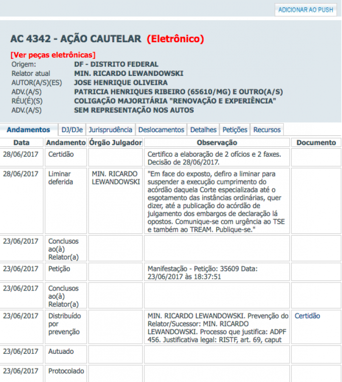 O ministro do Supremo Tribunal Federal (STF) Ricardo Lewandowski deferiu uma liminar suspendendo a eleição direta para o Governo do Amazonas, na noite desta quarta-feira(26). Lewandowski é o relator de todas as ações de Arguição de Descumprimento de Preceito Fundamental (ADPFs) e cautelares que tratam das eleições suplementares no Estado que estão tramitando no STF. A medida recoloca no cargo o governador cassado, José Melo, porque o ministro suspendeu o acórdão de cassação, até o julgaento final dos recursos impetrados pelas partes.