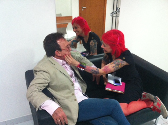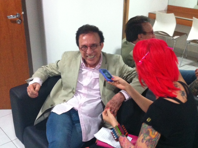 Nosso entrevistado de hoje dispensa apresentações, é muito conhecido da velha guarda, é um amante das composições voltadas para o coração e tem uma energia incrível do alto de seus 78 anos. Eu não esperava conferir a performance dele, achei que nossa entrevista rolaria antes dele entrar no palco. Fiquei pensando seriamente: “será que aguento esperar?”. Fiquei 2h contemplando um show que me foi ofertado e já que eu estava lá abracei o momento. Pude viver e conferir de perto um ídolo tão amado e esperado junto com tantas pessoas emanando alegria... mais uma vez eu estava fazendo o que mais gosto, unindo prazer ao meu trabalho. Me diverti tanto, algumas músicas lembraram meu avó. E daí gravei partes do show e fotografei também, pois além de divertido, ele brinda seu público com doses extras de humor. A pessoa que tive a honra de conhecer, nessa entrevista, já teve pretensões políticas e se arrepende amargamente, pois muitas portas se fecharam. Definitivamente política não é pra ele. Amicíssimo de Artur, brincou no show dizendo que o prefeito faz tudo e está à disposição dele, inclusive para servi-lo sexualmente, ri muito!! Brincadeiras à parte, me contou do carinho imenso que tem pelas fãs e se surpreendeu comigo dizendo que eu havia captado sua essência. Na hora de deixar uma mensagem ele silenciou e quase se emocionou, eu estava diante de um eterno romântico que sabe que a qualquer momento ele terá de partir. Elétrico, vaidoso e danado, me roubou um beijo. Pois é, e ainda pegou no meu pé sobre a cor do meu cabelo e também pelas minhas tatuagens. Confira meu bate papo com Moacyr Franco: Seu Amor ainda é tudo!!!.