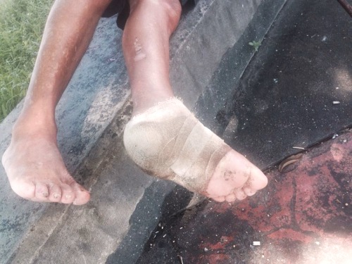 Raimundo da Silva Souza, 66, tem um ferimento grave no pé e não tem como se locomover e procurar assistência médica.