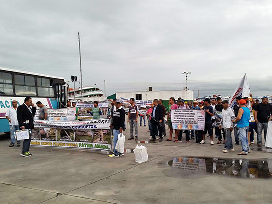 Manaus/AM - No início da manhã desta segunda-feira, 13, moradores de Coari/AM chegaram em barco no Porto da Manaus Moderna e, com faixas e cartazes, fizeram manifestação naquele local, onde pediam socorro à Justiça contra a corrupção naquele município.
