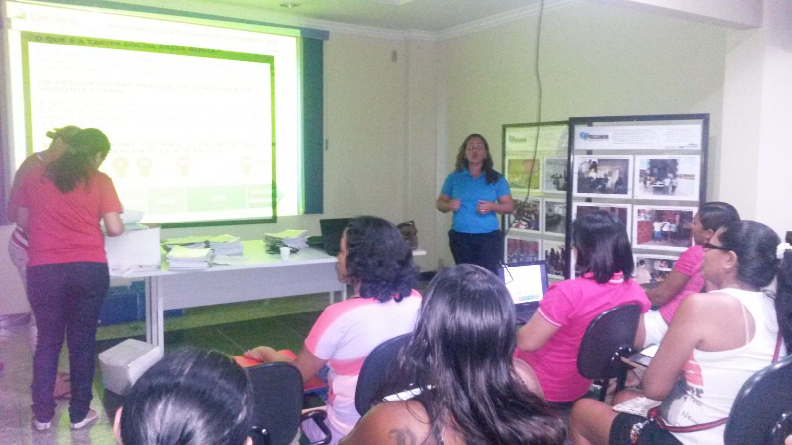 Os novos residentes do Prosamim do São Raimundo também receberam esclarecimentos sobre Tarifa Social e Direitos e Deveres dos Consumidores que foram explanados pela Assistente Administrativa, Aline Priscila da Rocha Maquiné, do Departamento de Atendimento aos Clientes da Eletrobras Amazonas Energia.