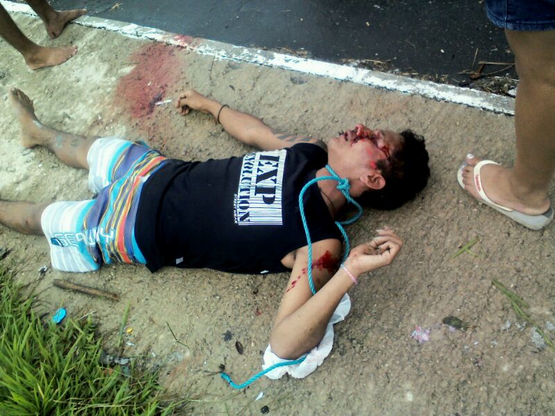 Ao tentar atacar um dos moradores, o jovem abaixo teve de experimentar a fúria de um conjunto inteiro cansado da 'gaiatice'.