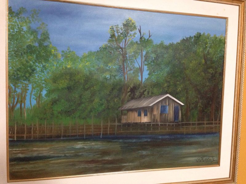 Quadro pintado por Falabella, retratando paisagens do interior do Amazonas