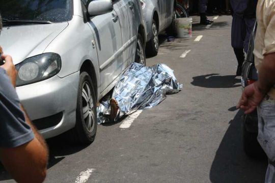 Carro alvejado pela polícia quando os assaltantes tentaram fugir. Foto: Pedro Braga jr