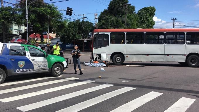 Manaus/AM - Um motociclista de cerca de 35 anos morreu na tarde deste domingo (16) em um acidente entre uma motocicleta e um ônibus em frente ao Terminal 2, na Avenida Borba, bairro Cachoeirinha, zona Centro-Sul.