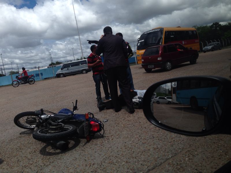 Conforme as informações, um carro dirigido pelo rapaz de terno (ver foto) atropelou o motociclista durante uma tentativa de ultrapassagem.