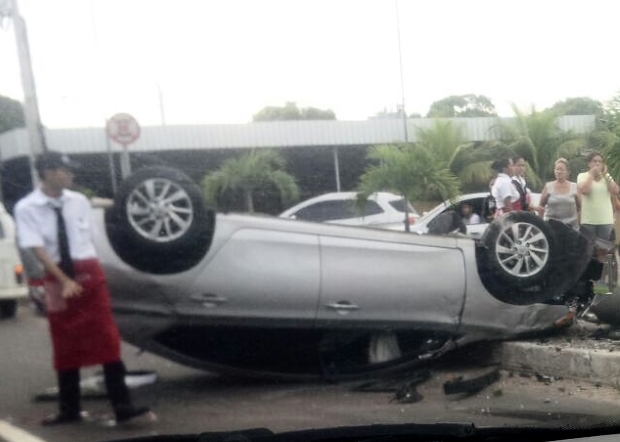 Suposto proprietário do carro modelo Nissan Sentra, placa OAM 1201, foge depois de capotar com o veículo na manhã deste domingo, 22, em frente à panificadora Pãozinho, na Avenida Desembargador João Machado, bairro do Alvorada. Segundo testemunhas presentes ao local, o motorista dirigia em alta velocidade.