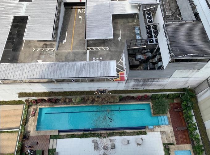 O motorista não identificado que estava no estacionamento do Emporium Roma, supermercado vizinho ao edifício, atravessou o muro do local e quase caiu na piscina do condomínio de luxo. Os destroços ficaram na água.