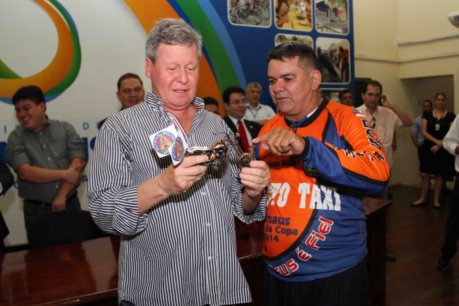 O prefeito Artur Virgílio Neto recebeu aproximadamente 500 mototaxistas que foram à sede da Prefeitura de Manaus, na zona Oeste, para comemorar a regulamentação da categoria, por unanimidade, na Câmara Municipal de Manaus. O prefeito disse que irá sancionar a lei assim que ela for enviada ao Executivo Municipal.