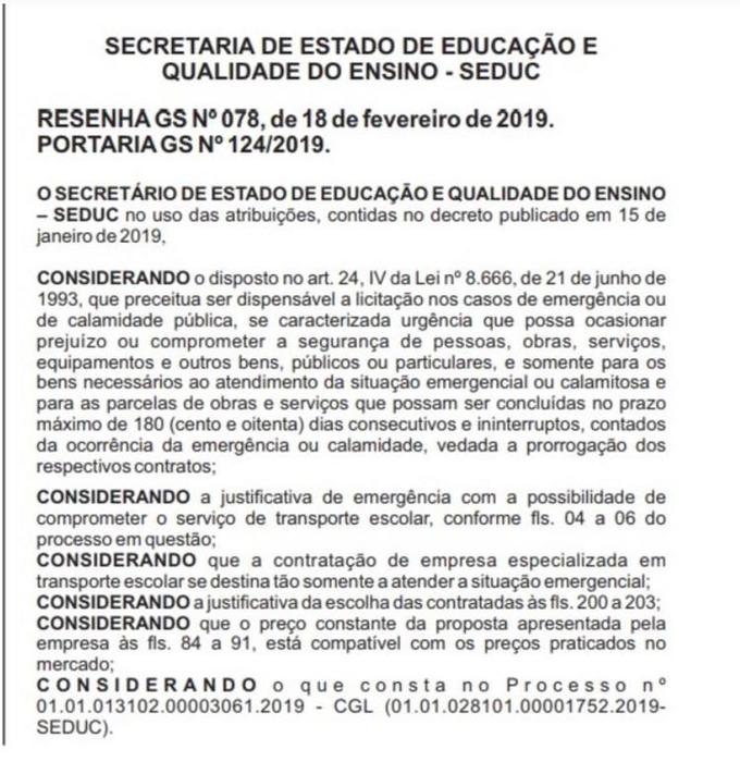 Confira a portaria de dispensa de licitação