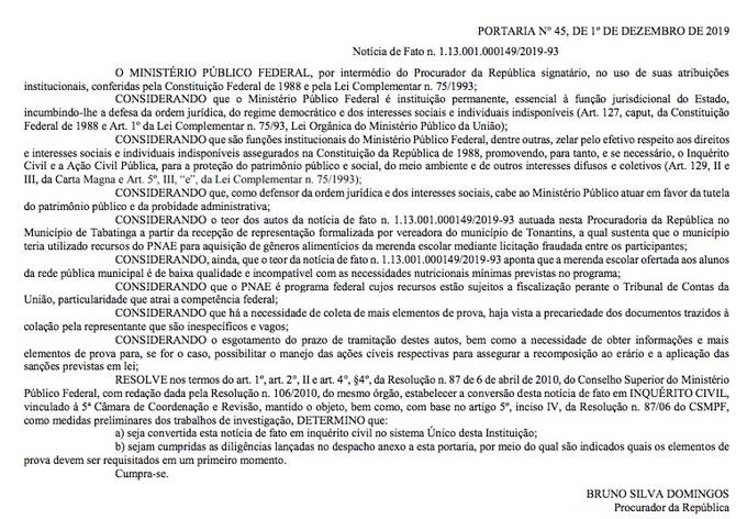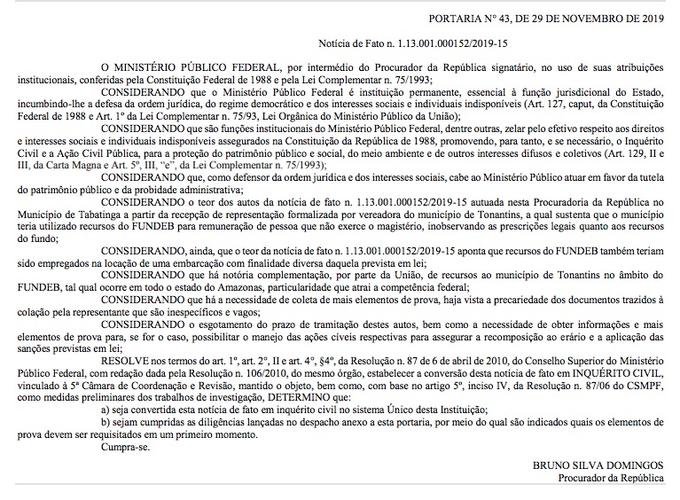 Dois Inquéritos Civis foram abertos para investigar as denúncias, conforme determinação do procurador Bruno Silva Domingos. As portarias de aberturas dos inquéritos foram publicadas no Diário Oficial Eletrônico do MPF desta quarta-feira (4).