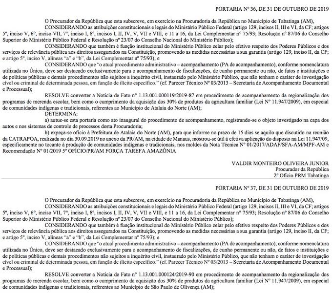 Manaus/AM - Três municípios do Amazonas, Jutaí, Atalaia do Norte e São Paulo de Olivença, serão acompanhados pelo Ministério Público Federal (MPF) sobre a inclusão de produtos da agricultura familiar na merenda escolar. Um Procedimento Administrativo foi instaurado pelo procurador Valdir Oliveira Junior, conforme portaria publicada no Diário Oficial do MPF desta quarta-feira (6).