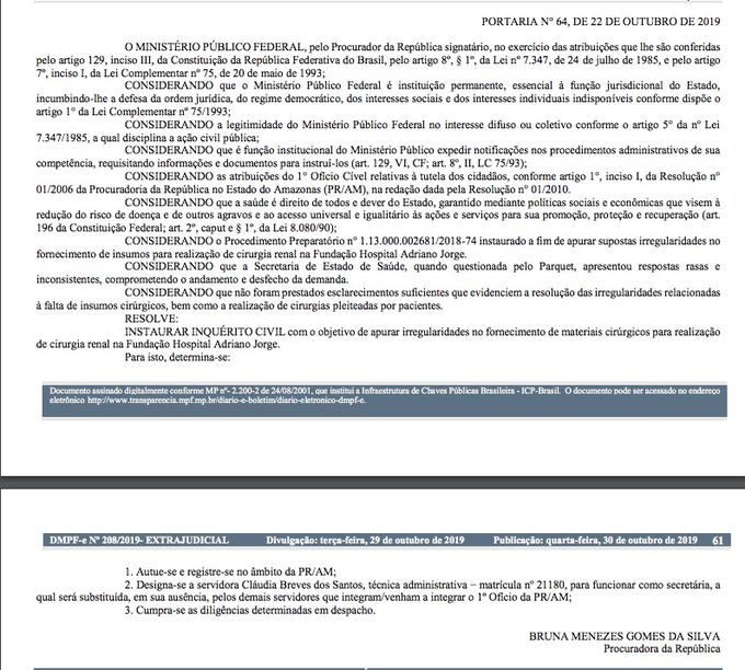 Um Procedimento Preparatório para apurar a denúncia foi aberto ainda em 2018 e explicações foram solicitadas da Secretaria de Estado de Saúde do Amazonas (Susam), mas as respostas foram consideradas “rasas e inconsistentes”, segundo o MPF.