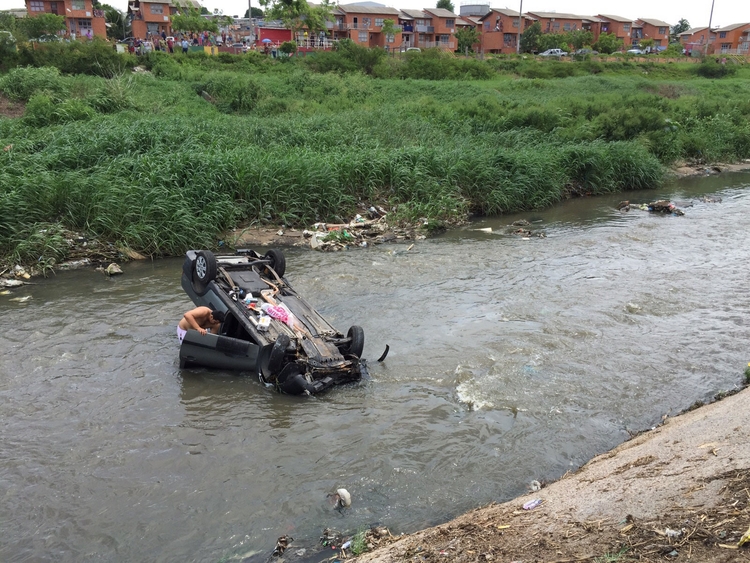 Mulher capota com carro e cai dentro de igarapé na Cachoeirinha