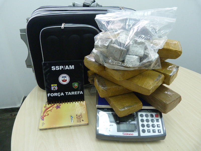 A Força-Tarefa da Secretaria de Segurança Pública do Amazonas prendeu Viviane Barroso Correa, natural de Campo Grande(MS), e Vanessa Garcia, que portavam dez quilos de maconha escondidos dentro de uma mala de viagem.