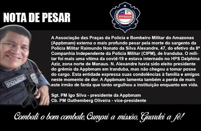 O sargento Raimundo Nonato Alexandre, de 47 anos, estava internado no Hospital e Pronto-Socorro Delphina Aziz. Ele era lotado na 8ª Companhia Independente da Polícia Militar (CIPM) de Iranduba. O sargento da reserva Clevilane dos Santos estava internado na Unidade de Pronto Atendimento (UPA) Campos Sales.