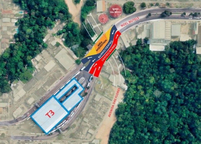 Manaus/AM - O desvio no tráfego de veículos no sentido bairro-Centro na avenida Noel Nutels começa a vigorar nesta sexta-feira (08). A alteração no trânsito ocorrerá em razão da construção da trincheira sob a avenida Noel Nutels, no trecho 2 da avenida das Flores, bairro da Cidade Nova I, zona norte de Manaus.