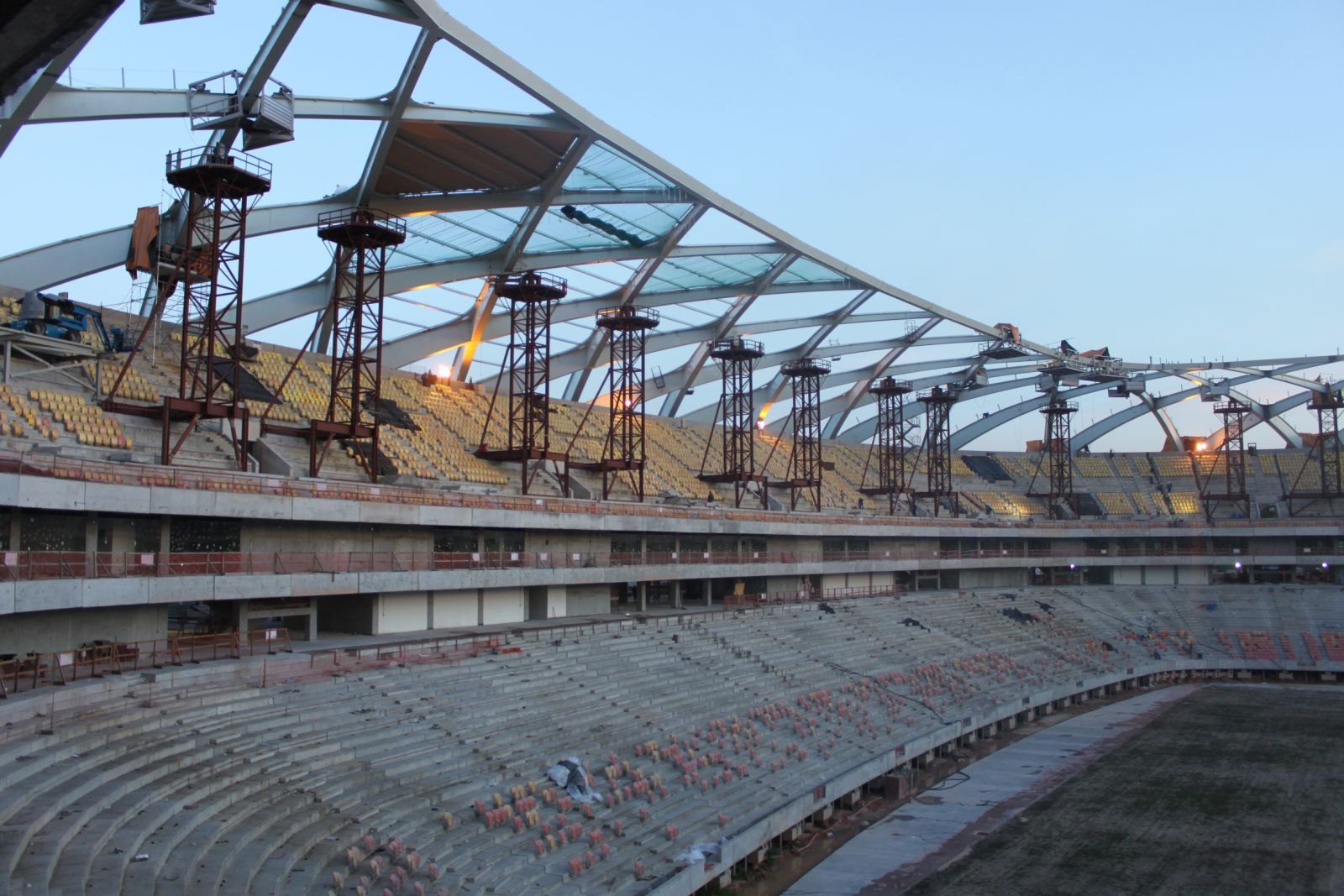 As principais frentes de trabalho continuam concentradas na montagem da estrutura metálica da cobertura e fachada. A parte da fachada deve receber a última peça e ser fechada nesta quarta-feira e a cobertura será concluída até o fim de outubro. “Com o fechamento da estrutura metálica, vamos nos concentrar na área de acabamentos, que é a etapa que exige mais cuidado por parte dos operários”, afirmou o coordenador.