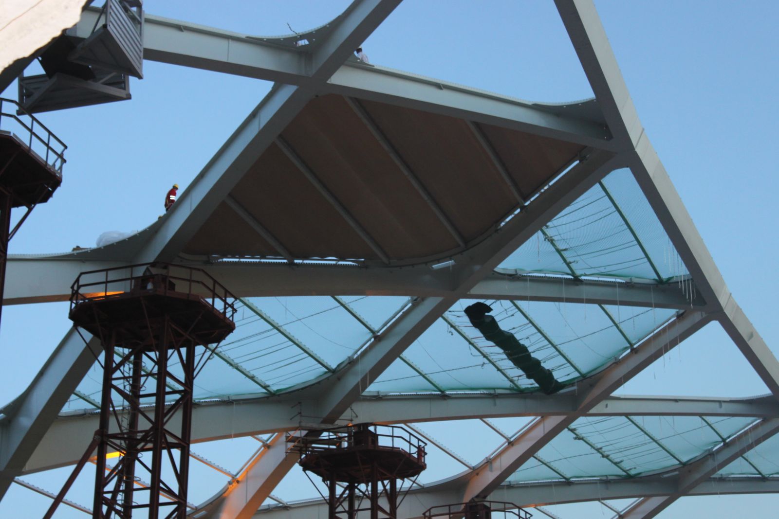 A membrana translúcida vai permitir a entrada de luz natural, promovendo de economia de energia elétrica. “É uma etapa importante, em que começamos a cobrir efetivamente a Arena. Esse passa a ser um novo momento em que se tem a imagem de finalização da obra”, ressaltou Capobiango.