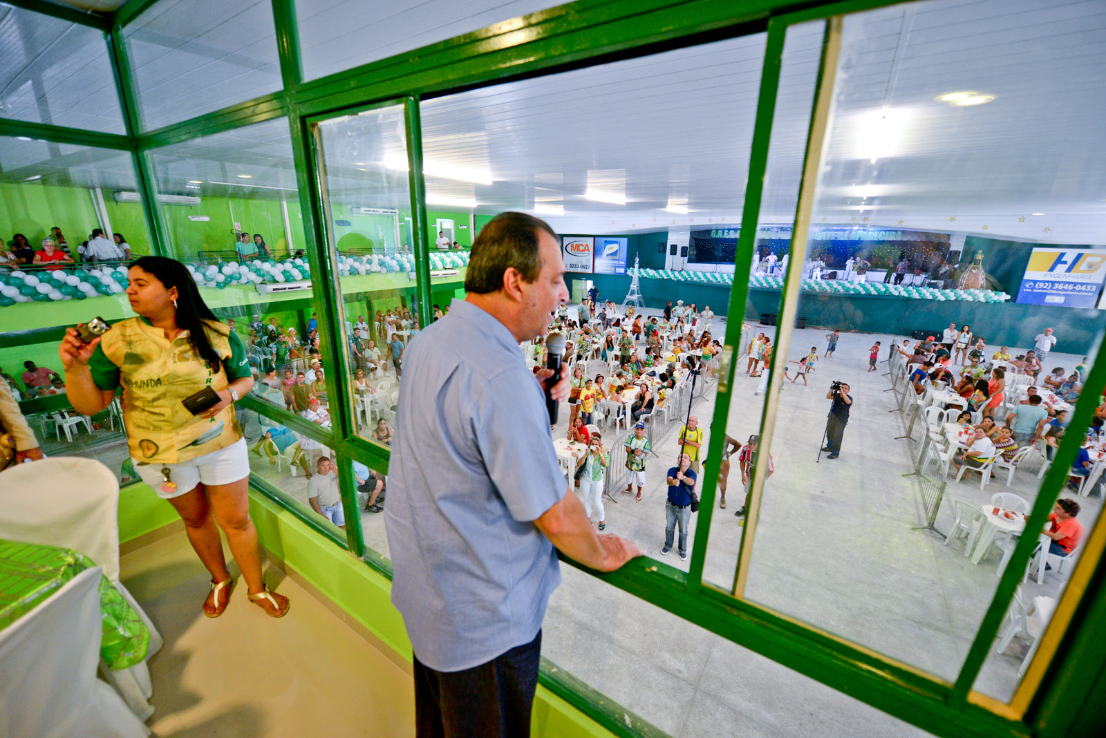 O governador Omar Aziz esteve presente na festa de reinauguração da quadra da Escola de Samba Mocidade Independente de Aparecida, no bairro Aparecida, Centro, zona sul. Patrono da escola da qual já foi presidente, o governador chegou à festa, que iniciou com uma feijoada para a comunidade, acompanhado da primeira-dama e presidente do Fundo de Promoção Social do Estado (FPS), Nejmi Jomaa Aziz, e dos filhos Enzo e Johara.