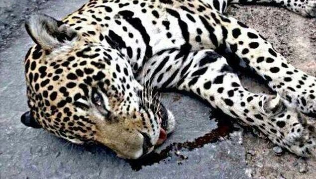 Uma onça atropelada e morta por carro desconhecido na BR-174, a Manaus/Boa Vista, foi recolhida pelo Ibama a fim de evitar a comercialização da pele, dentes e outras partes do animal