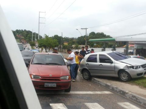 O outro acidente aconteceu cerca de 50 metros mais à frente e envolveu três veículos que colidiram próximo à faixa de pedestre.