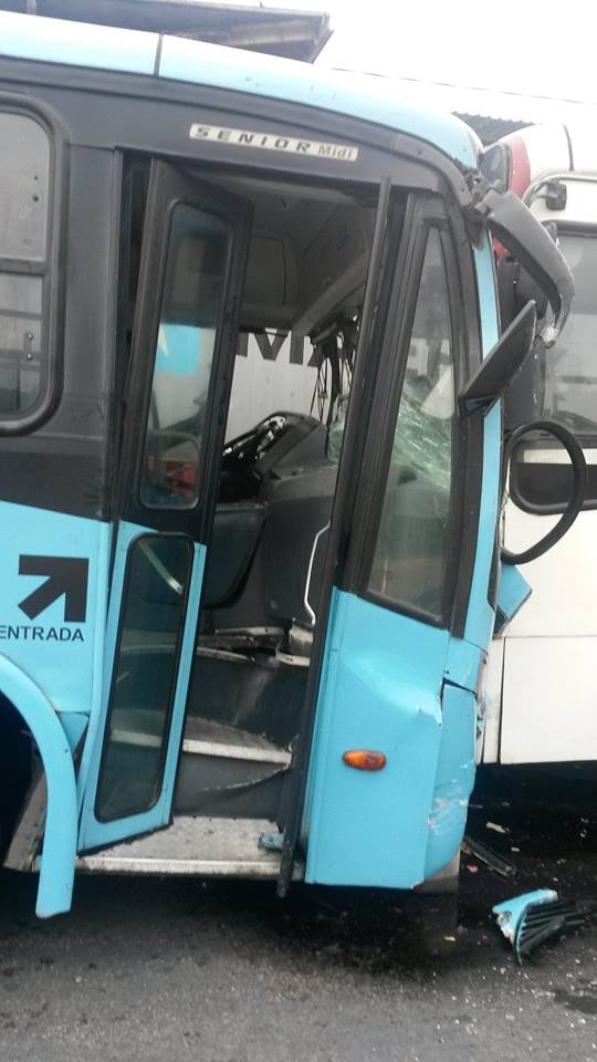 Ônibus colidem após falha nos freios. Passageiros feridos