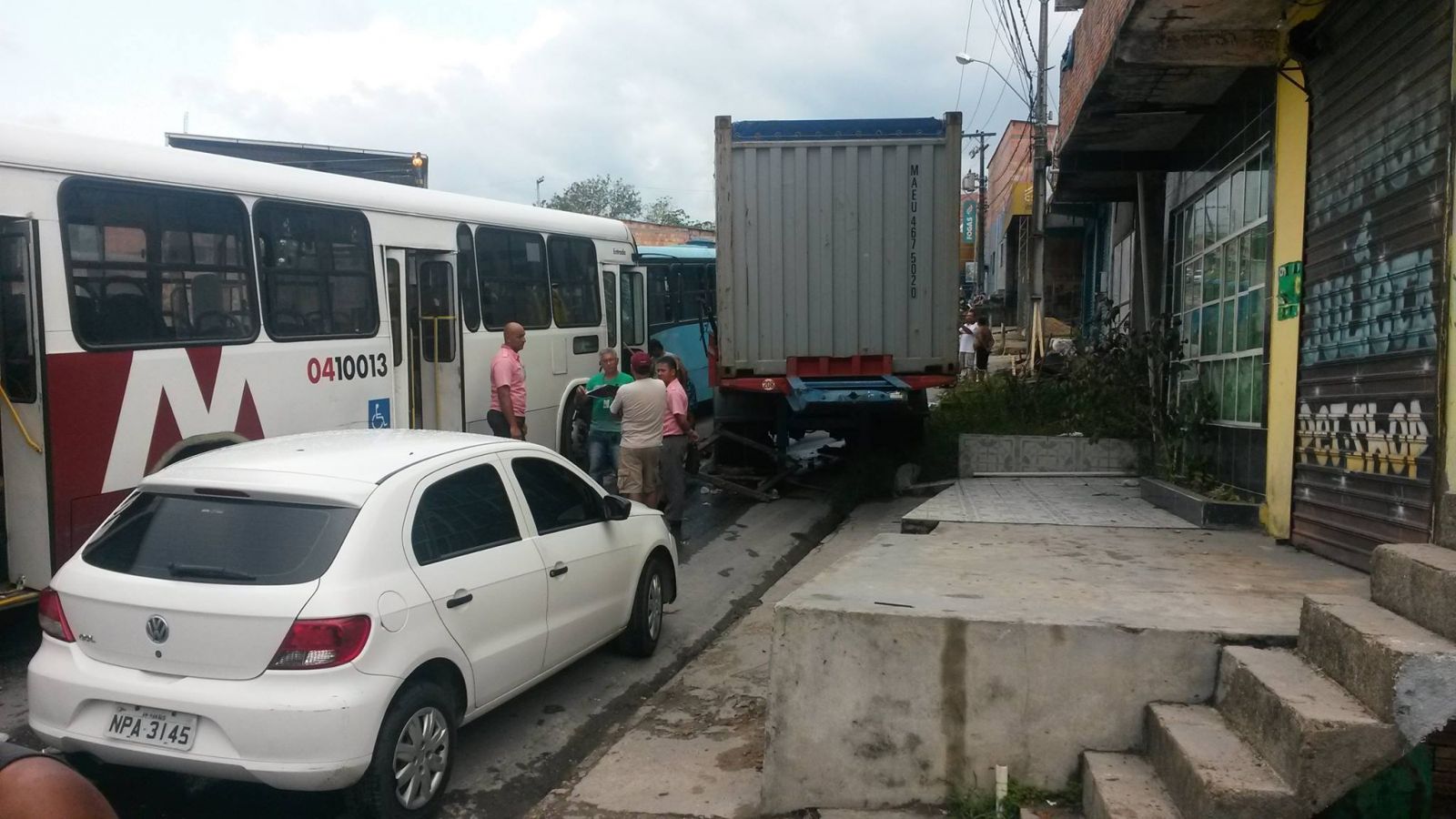 Segundo informações, os freios do ônibus que faz a linha 054 falharam causando a colisão com um container que estava estacionado, atingindo também o ônibus que vinha em sentido contrário.
