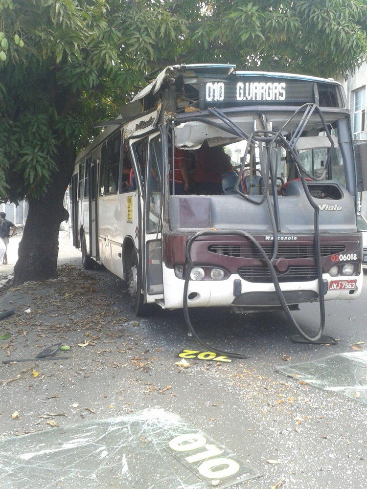 Um ônibus da linha 010 da empresa Açaí colidiu com uma árvore na tarde desta segunda-feira (28), em Manaus.