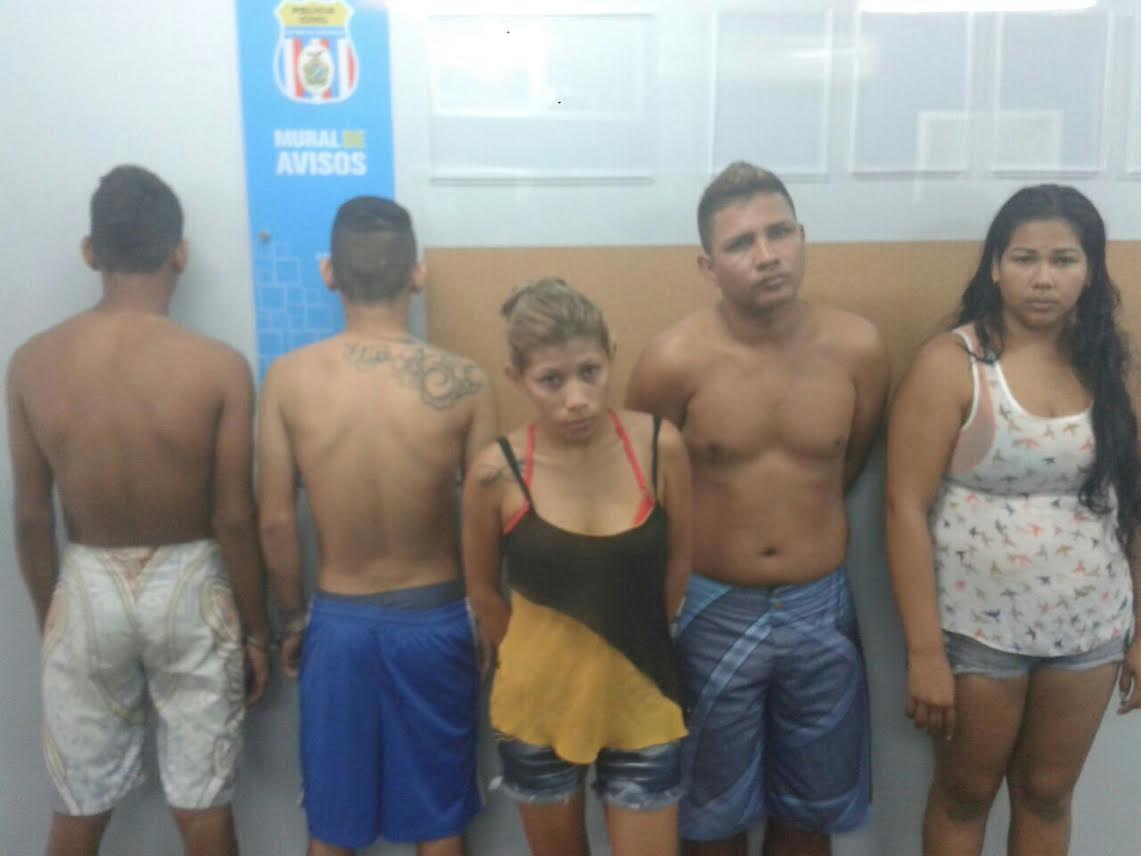 Alex e Carla foram qualificados em flagrante por tráfico de drogas (Artigo 33 da Lei 11.343/06) e associação ao tráfico (Artigo 35 da Lei 11.343/06). Gabriele foi autuada por tráfico de drogas e posse irregular de munição (Artigo 12 da Lei nº 10.826 /03). O adolescente foi qualificado por associação ao tráfico e será encaminhado à Delegacia Especializada em Atos Infracionais (DEAAI). Os demais presos serão encaminhados à Cadeia Pública Desembargador Raimundo Vidal Pessoal onde ficarão à disposição da Justiça.