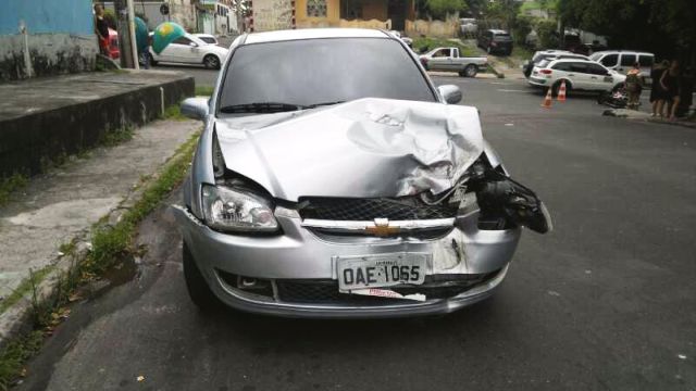 Manaus/AM – Em menos de duas horas, mais um acidente aconteceu no cruzamento da avenida Tefé com a rua 7, envolvendo carro e motocicleta. O Corsa Sedan de placas OAE-1065 bateu o motociclista que foi socorrido com escoriações e encaminhado ao pronto-socorro