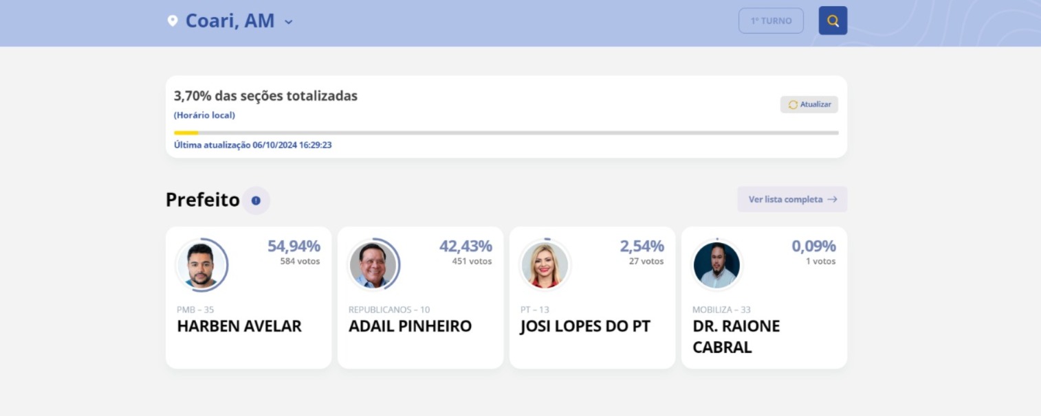 Início Amazonas Parcial mostra Harben e Adail Pinheiro na disputa pela prefeitura de Coari