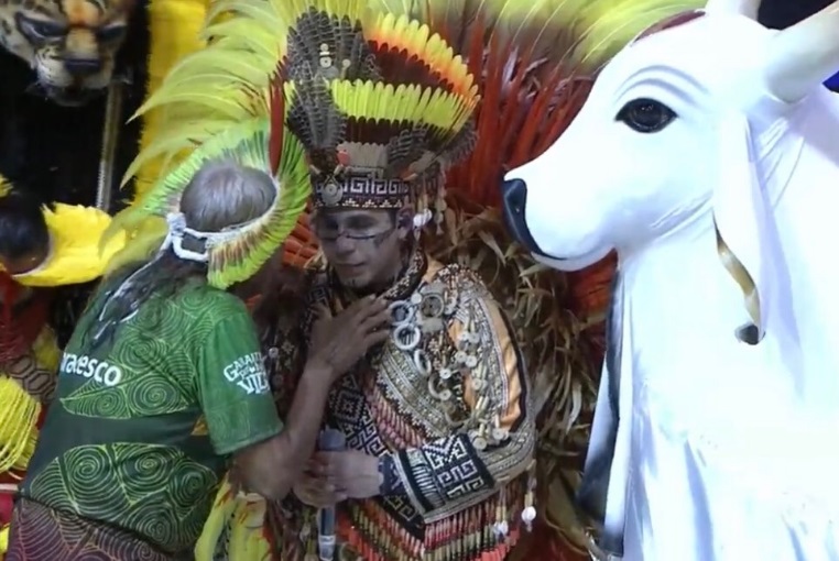 O cacique participou do ritual do Pajé, Adriano Paquetá, dando um show no Bumbódromo. A passagem do líder indígena também foi marcada por um momento emocionante em que o cacique Raoni, do povo Kaiapó, abençoou o cantor Sebastião Jr. na arena.
