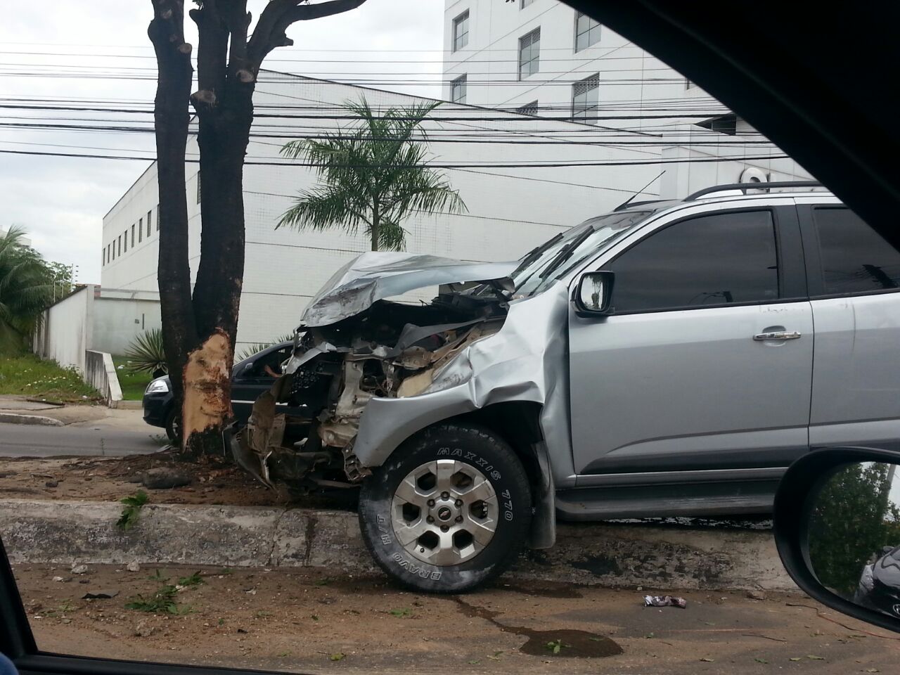 Conforme testemunhas o veículo perdeu o controle enquanto seguia na direção do bairro, subindo o canteiro central e sendo contido por uma das árvores. Não há informações sobre feridos graves.