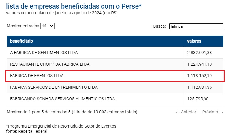 A Fábrica de Eventos lidera o ranking ao deixar de pagar o montante de mais de R$ 1 milhão em tributos.