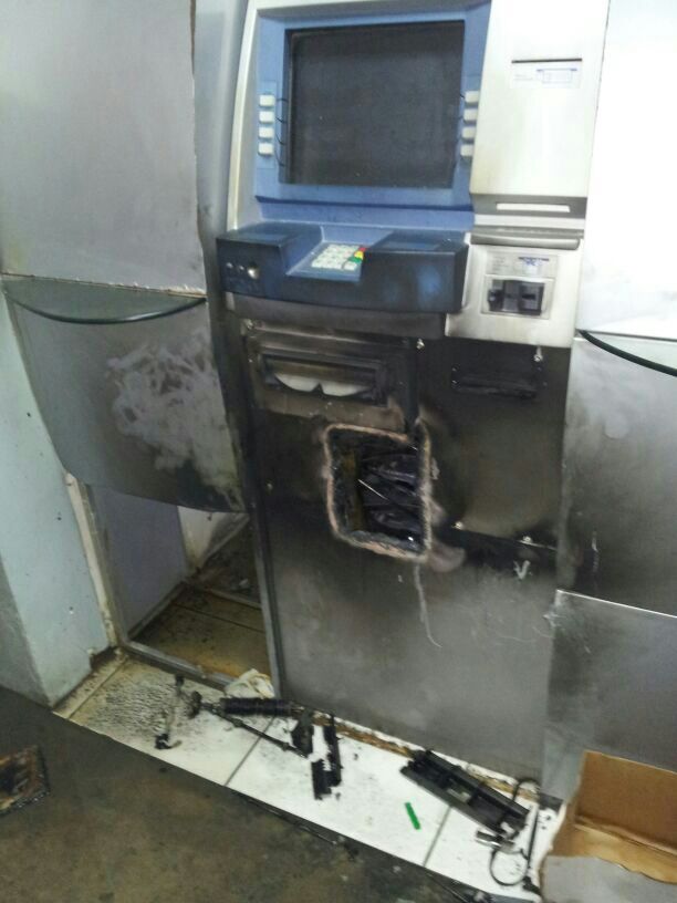 Para arrombar o caixa eletrônico, o bando usou um maçarico e um cilindro de oxigênio e roubaram todo o dinheiro que estava dentro da máquina.